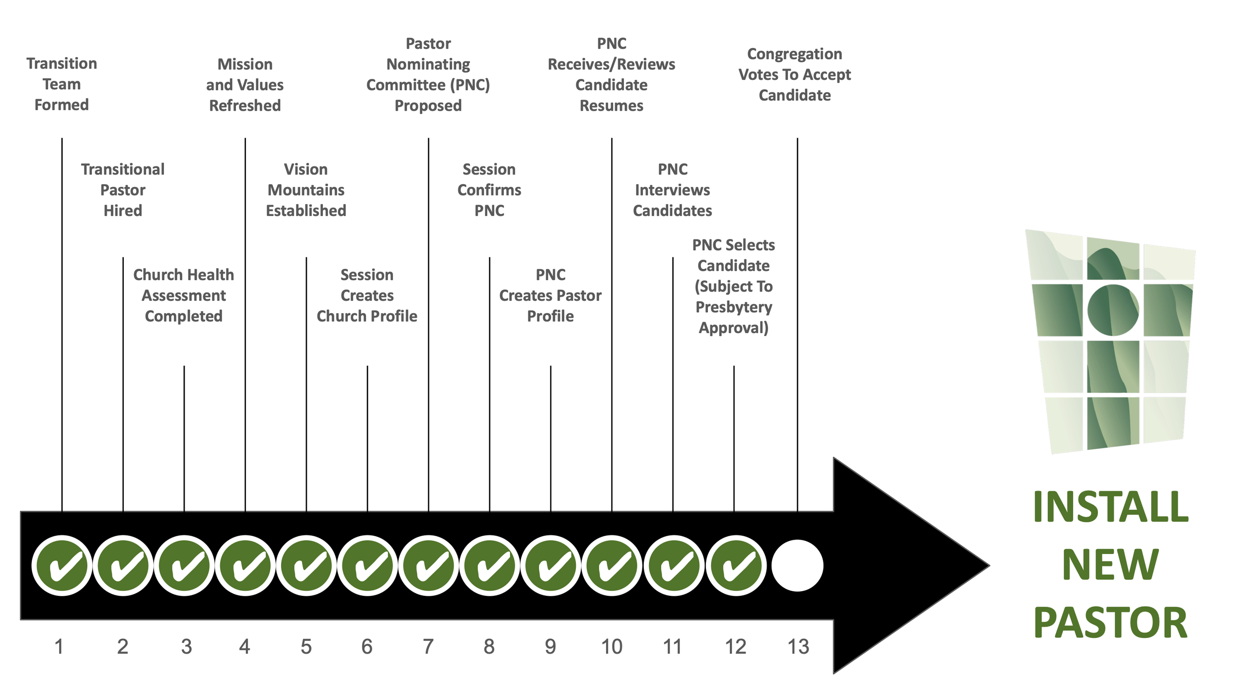 The MPT is the Ministry Partnership Team at Bluewater Presbytery that oversees roughly 20 Presbyterian church within their ECO constellation. The MPT will work closely with the PNC in posting our church profile on their job board and forwarding interested candidates to the PNC for follow-on vetting and interviews. ECO provides a comprehensive Pastoral Search and Transition Guide that can be found on the ECO website that lays out the various steps required to ultimately install a new senior pastor.